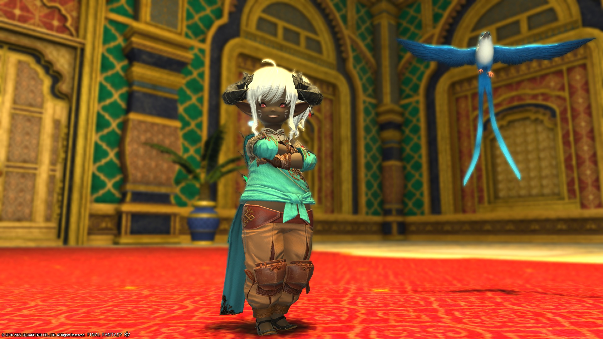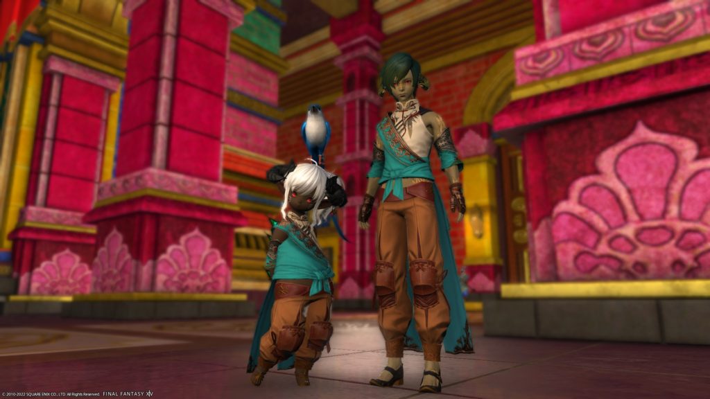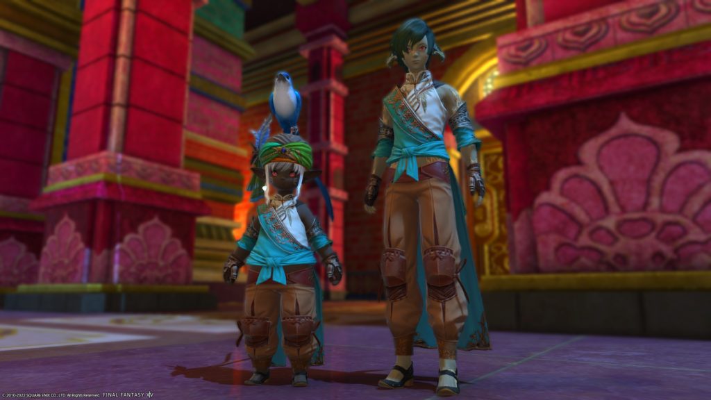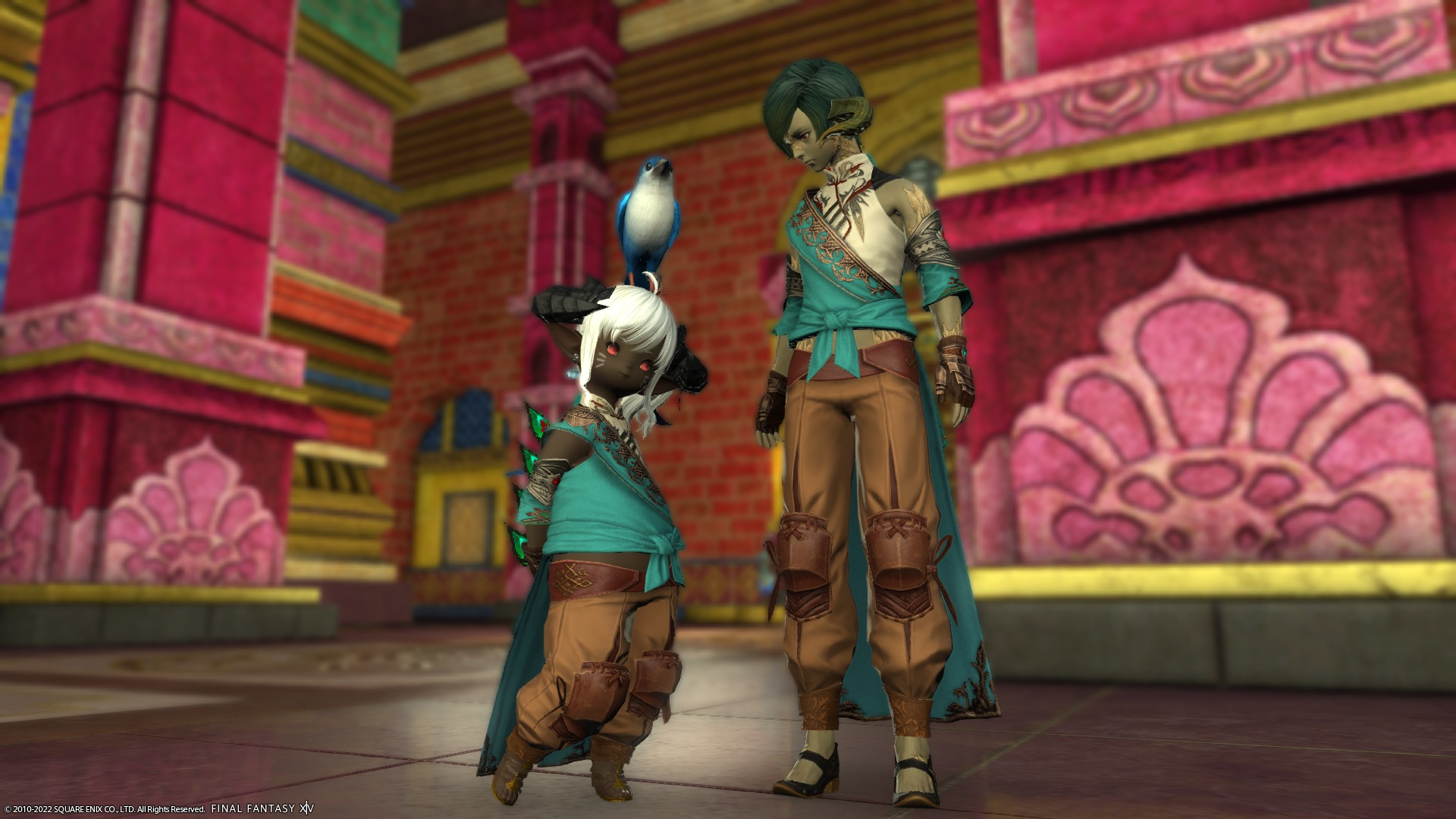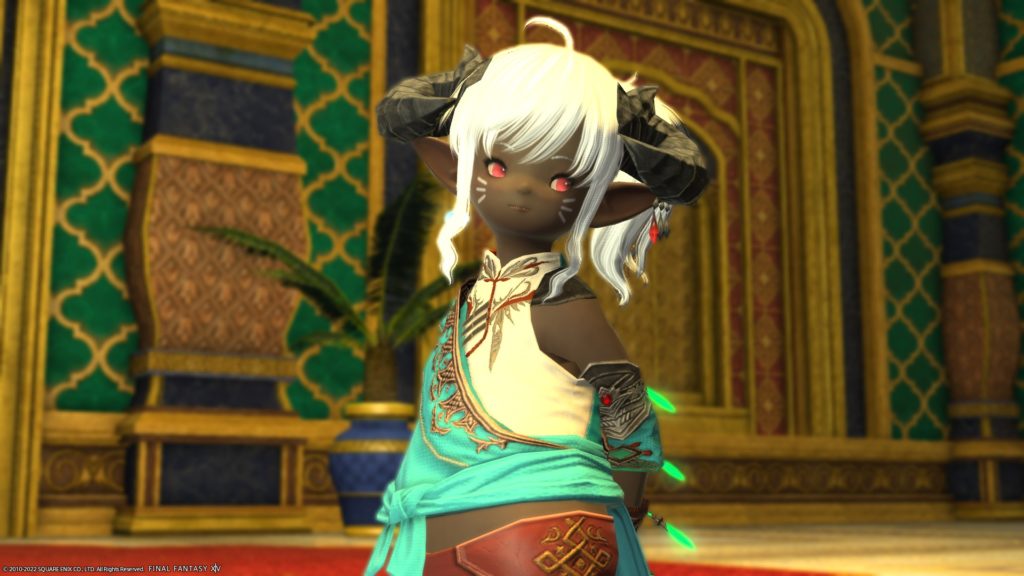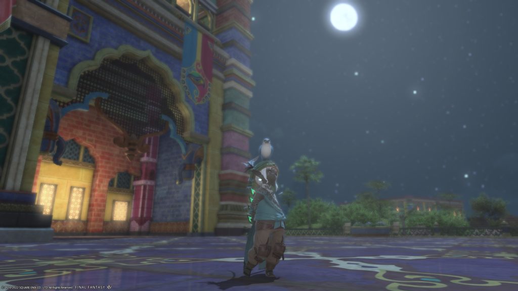 投稿日: 2022/04/292022/05/02 投稿者: yummy_r「ああ、いまはわたしが太守だ」(うそ) パーラカ装備があれなことに今きづきました ので、メーガドゥーダとかなんとか宮殿でSS撮ってきました。 はいかわいい あ、頭装備はパーラカじゃないです、のってさんに買ってもらったデモン角です。 せっかくですので、 ほんものの太守さま(?)ともSS撮りました。 むむ、ヴァルシャン君、いがいと背たかいなー ほんとのパーラカ頭装備はこれ、ターバン風です。こっちもかわいいですねー 月がとってもきれいな夜でした。(ぐるぽ抜けたらめっちゃ雨ふってましたけど)