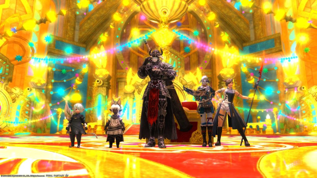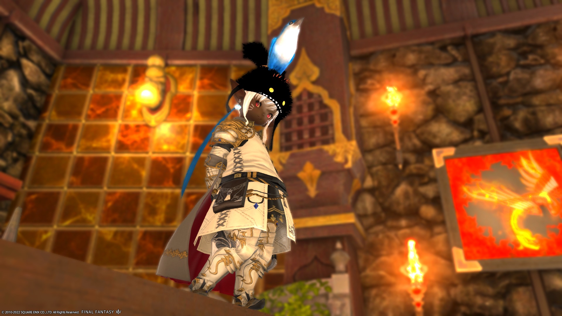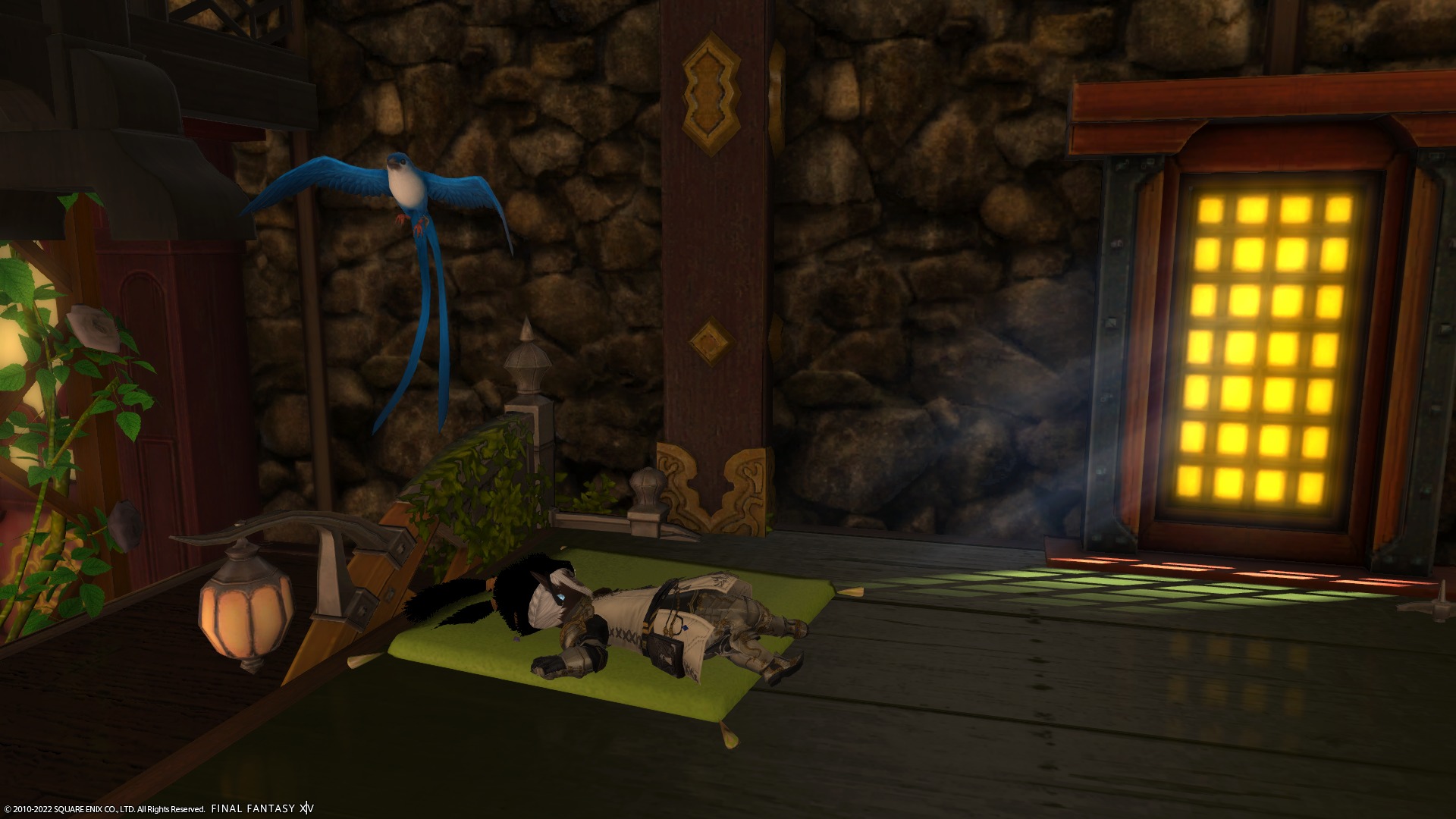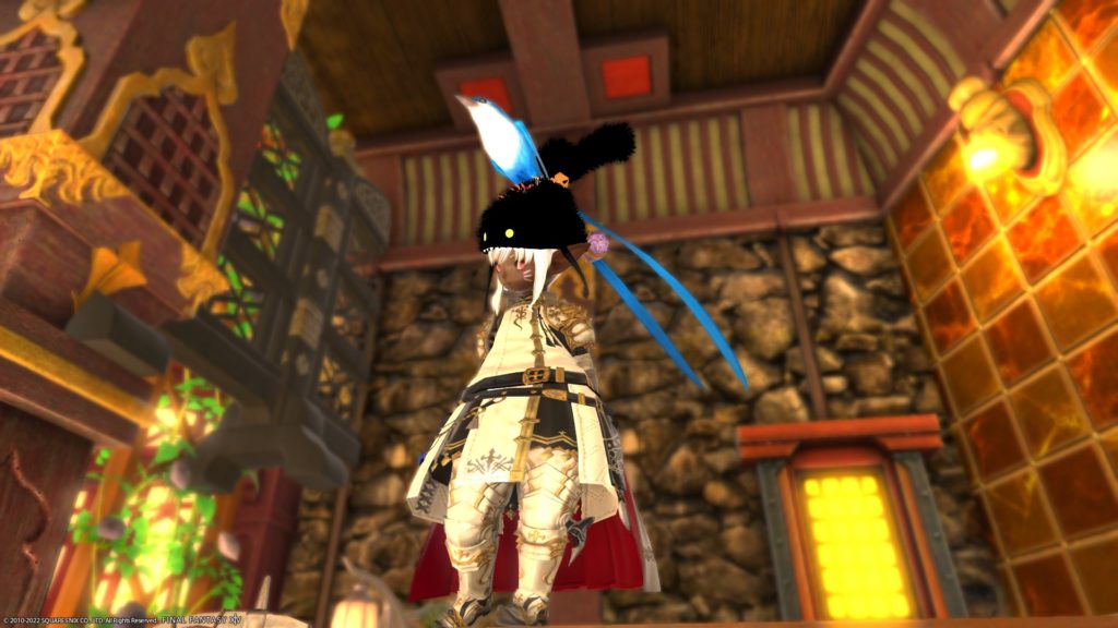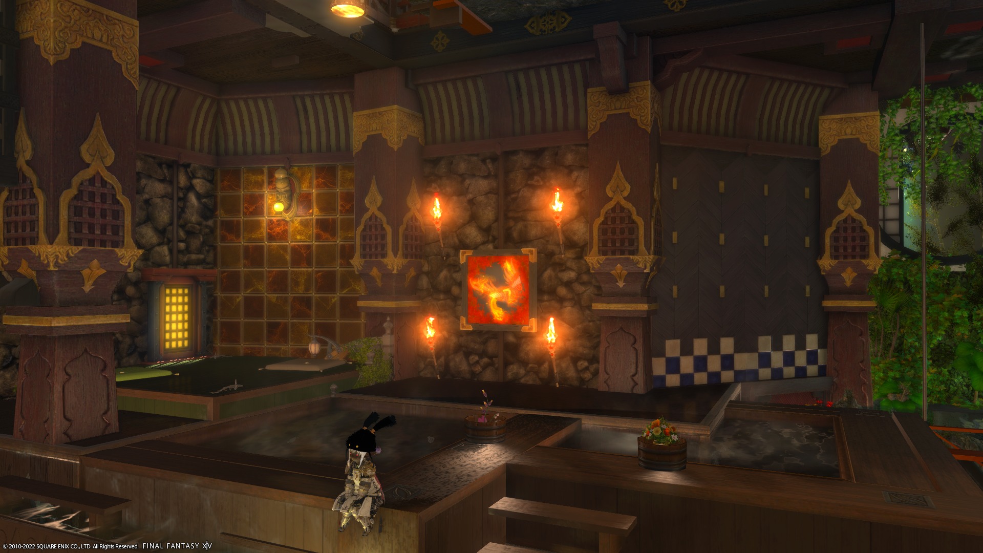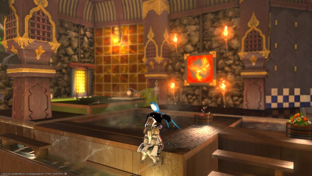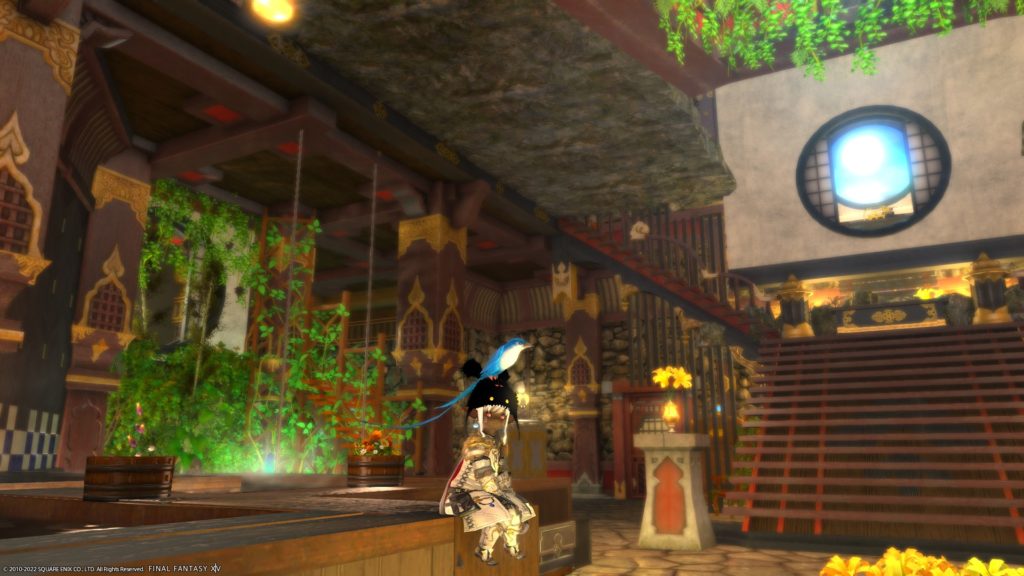 ここはもともとラノシアンなんとかーで座れるようにしてたのですが、下の段にも座れるようにしたくて、縁台とウルダハンなんとかーを直角に重ねて上下に座れるように・・・、