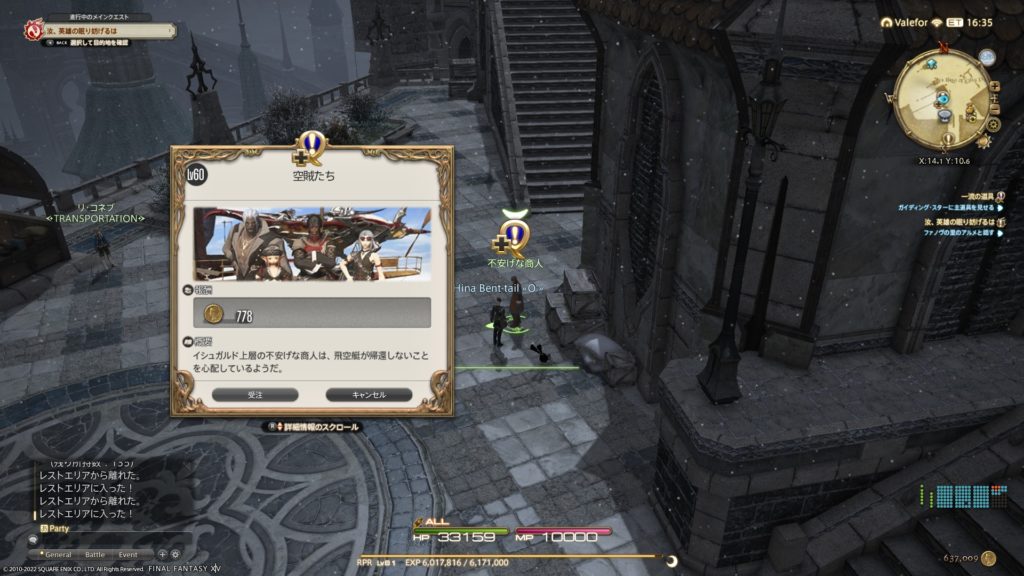 開放は、イシュガルドランディングにいる「不安げな商人」です。ずっと不安にさせててごめんなさい。